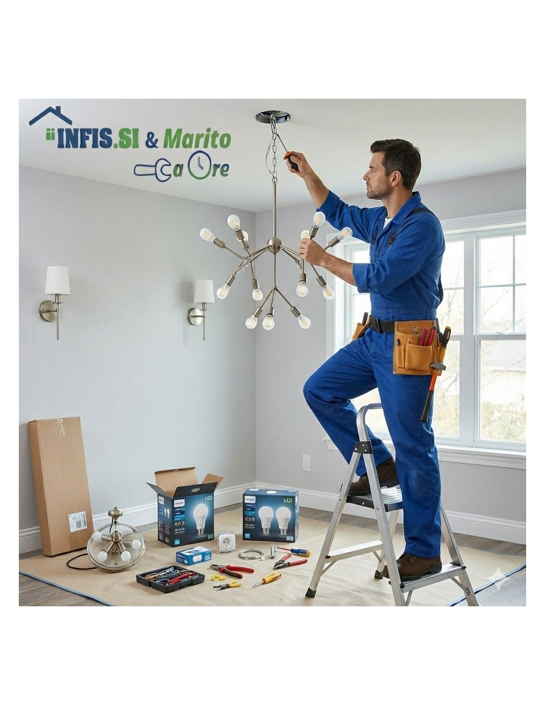 • Installazione (1 Ora): Montaggio e collegamento elettrico di 1 lampadario complesso o 2-3 punti luce semplici.