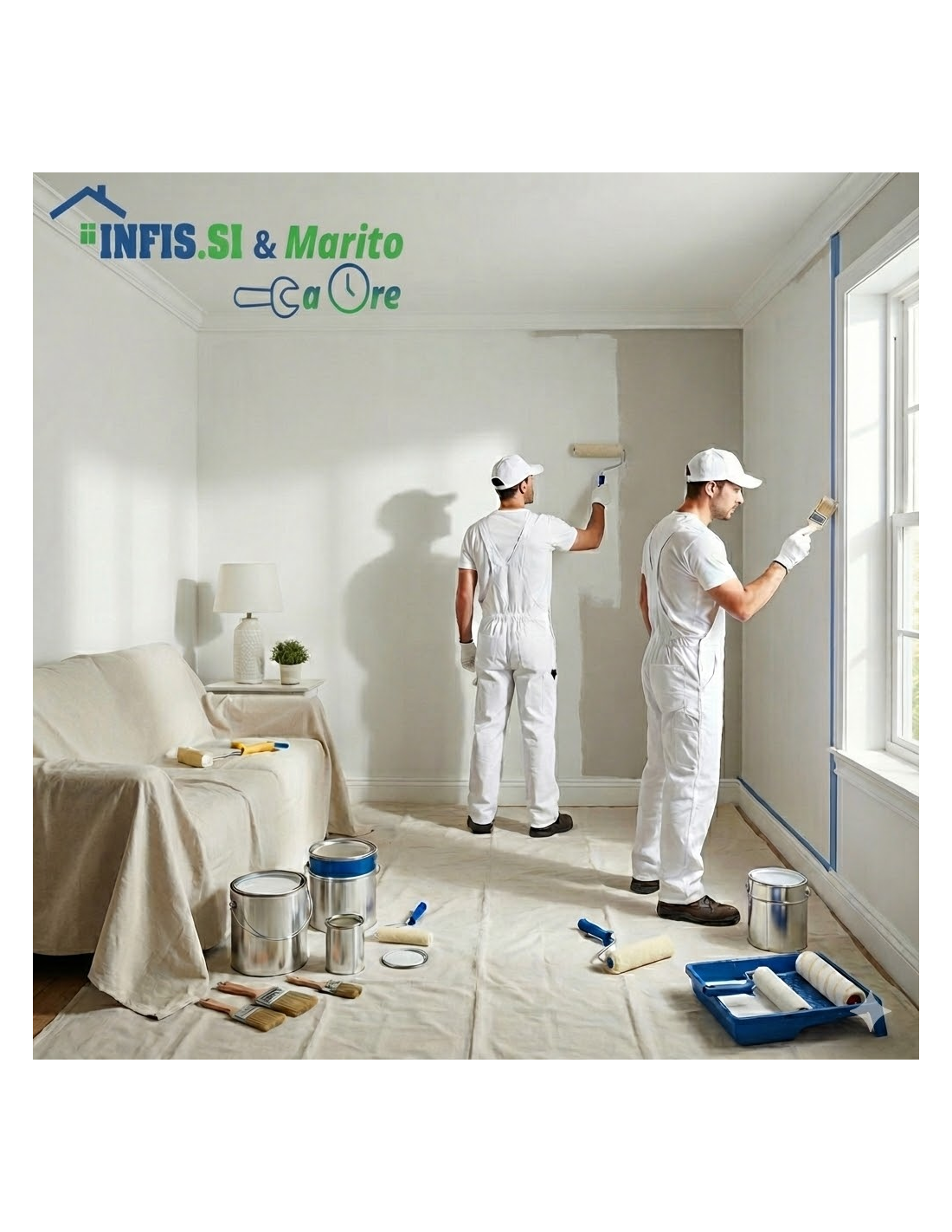 Il servizio "Marito a Ore - Pittore" (80,00 € tasse escluse) include 1 ora per consulenze, ritocchi o diagnosi. Materiali esclusi. La soluzione perfetta se non sai quale servizio specifico scegliere!